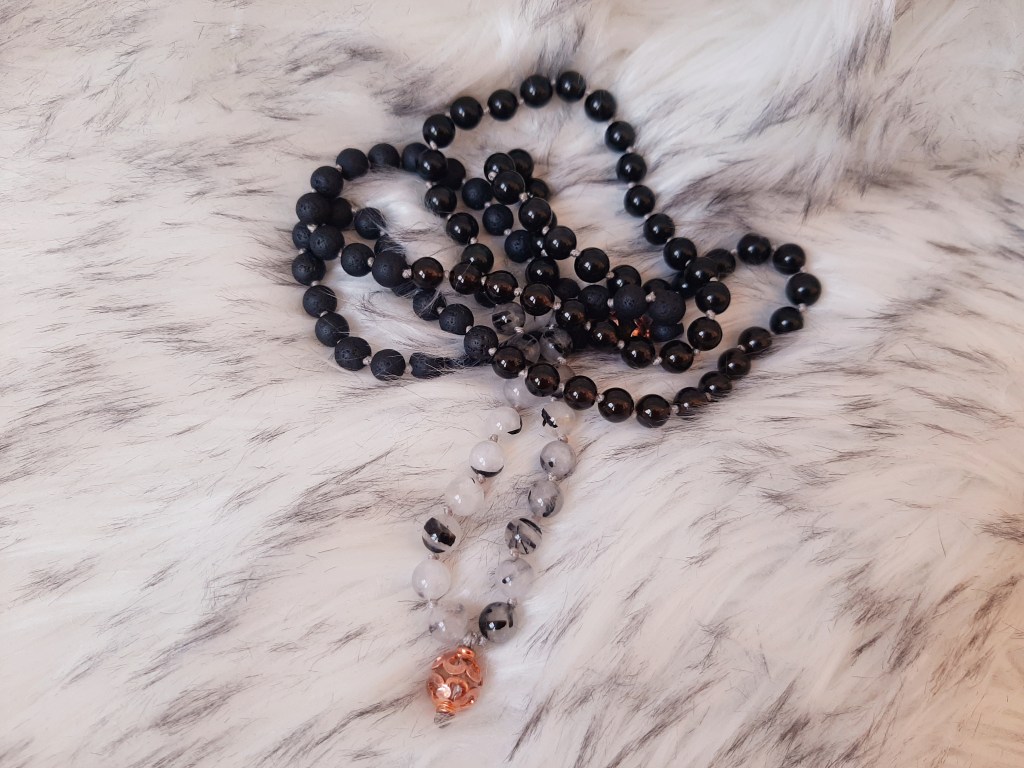 The stones in this prayer bead are all connected to the root chakra, located at the base of your spine. Their predominant energy is grounding, cleansing of negative energy, patience inducing, and clarifying a mind from illusion and cloudiness. The strand’s main function is Protection.